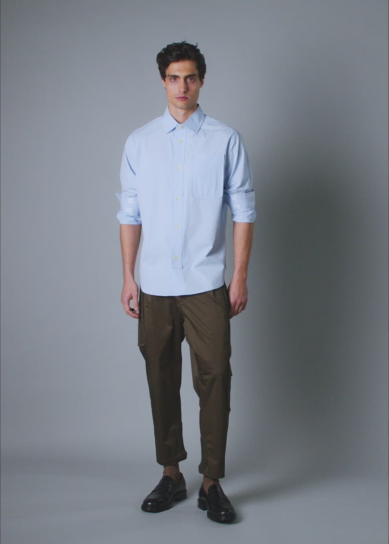 More than a classic button-down. This breathable Egyptian cotton poplin shirt disrupts tradition with engineered precision. The floating front placket hovers above the hem's edge, adding an architectural touch. The elongated chest pocket features a double-layer construction, creating a subtle 3D effect. Built for effortless wearability across seasons. The fabric comes from the Gossypium barbadense cotton plant, known for its extra-long staple (ELS) fibers, which are renowned for softness and durability. Thoughtful details reward those who pay attention. A shirt for those who appreciate the art of design.