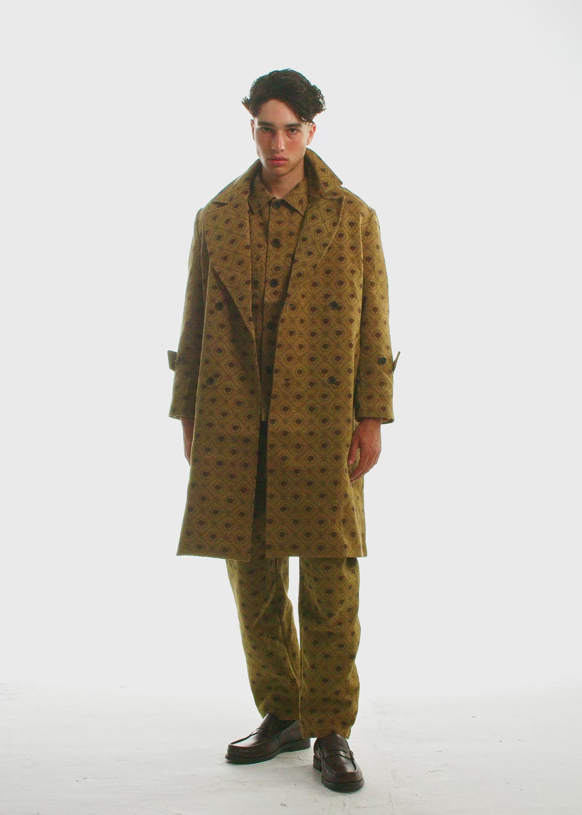 This mid-weight double-breasted piece is built to stand out. The oversized lapel and sharp tailoring nod to classic overcoats. The button-back vent makes your outfit unique from all angles. The tapestry Jacquard is handwoven in limited batches by skilled artisans on old world narrow-width looms. A distinctive pieces found nowhere else.