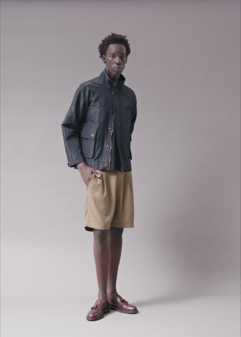 The Bareknuckle Shell Black jacket merges tactical design with refined restraint. Constructed from a lightweight poly material, it features a subtle sheen that shifts with movement. The structured silhouette, stand collar, and concealed two-way zipper lend a military precision. The buttons are corozo, carved from a South American palm nut. Not plastic. Reinforced panels bring craftsmanship to function.