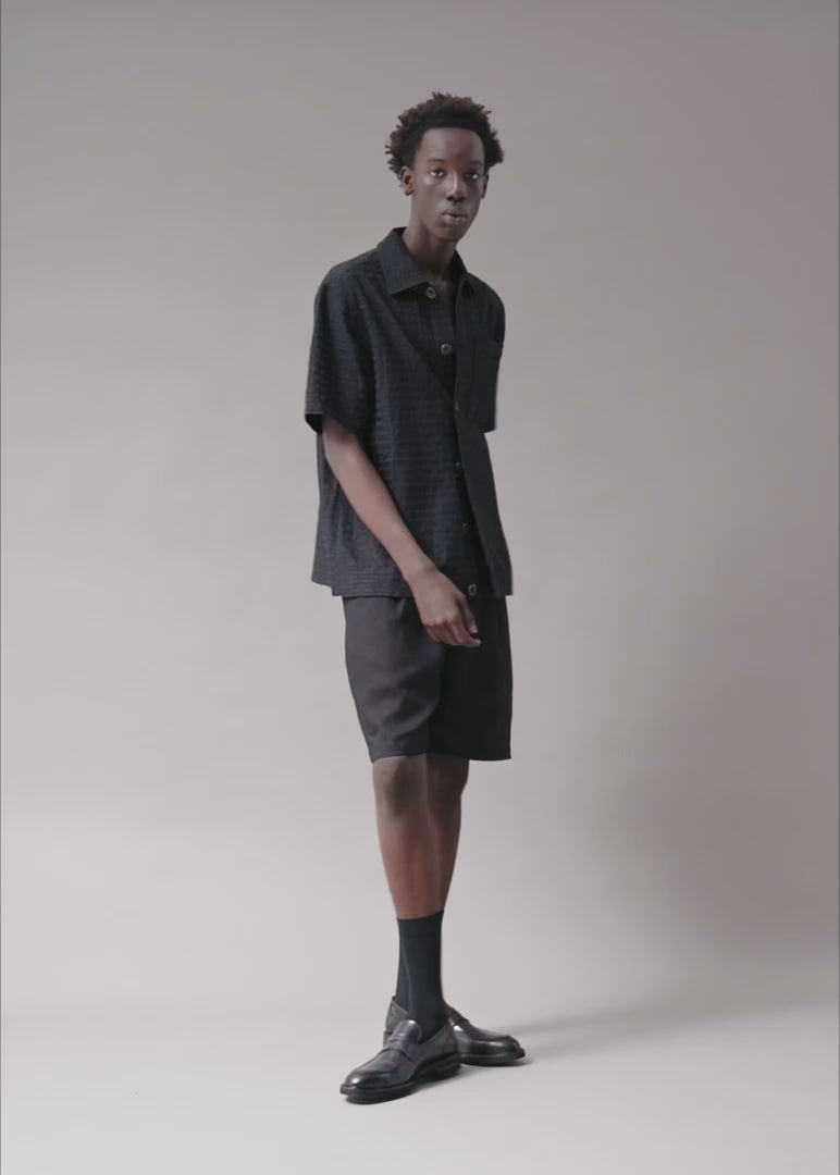 The Vexed Prisao Black is crafted from a textured cotton weave. The fabric has pieced horizontal bands woven directly into the cloth, creating texture and depth you can feel. We found a rare deadstock fabric while traveling and secured the last remaining meters. Just enough for a tightly limited run. These “lost fabrics” are sustainable by nature. They are nearly impossible to replicate. Once they are gone, they are gone. Our mission: create a limited number of styles for a limited number of individuals.